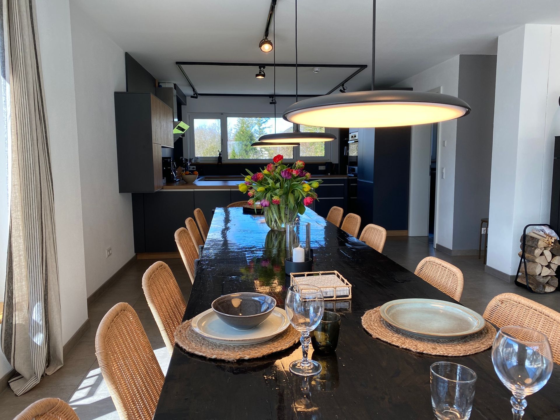 Der modern eingerichtete Wohnbereich lädt zum gemeinsamen Zusammensein, zum Brainstormen und Planen, zu netten Gesprächen und einem Glas Wein ein.