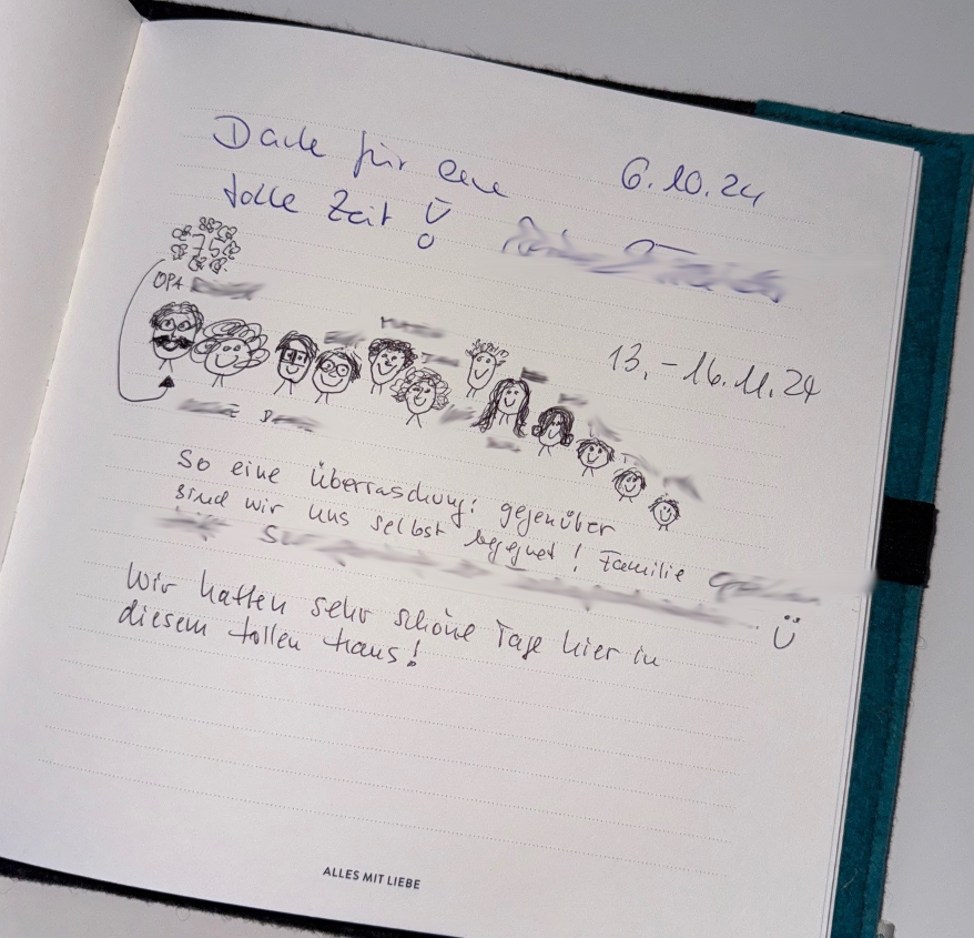Herzlichen Dank für die ausführlichen und kreativen Einträge in unser Gästebuch!
